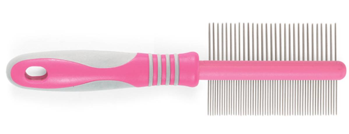 The Ancol Double Sided Cat Comb is designed for medium coats. This is a comb with an attractive pearlesque ergonomic handle and 2 sides designed especially for grooming cats. Suitable for both short or long haired breeds