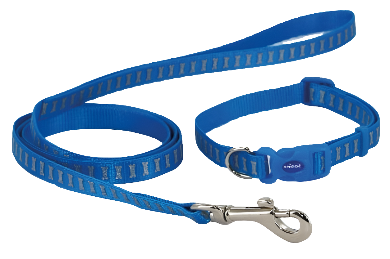 Ancol | Dog Walking | Small Bite Nylon Puppy Collar & Lead Set - Reflective Blue
