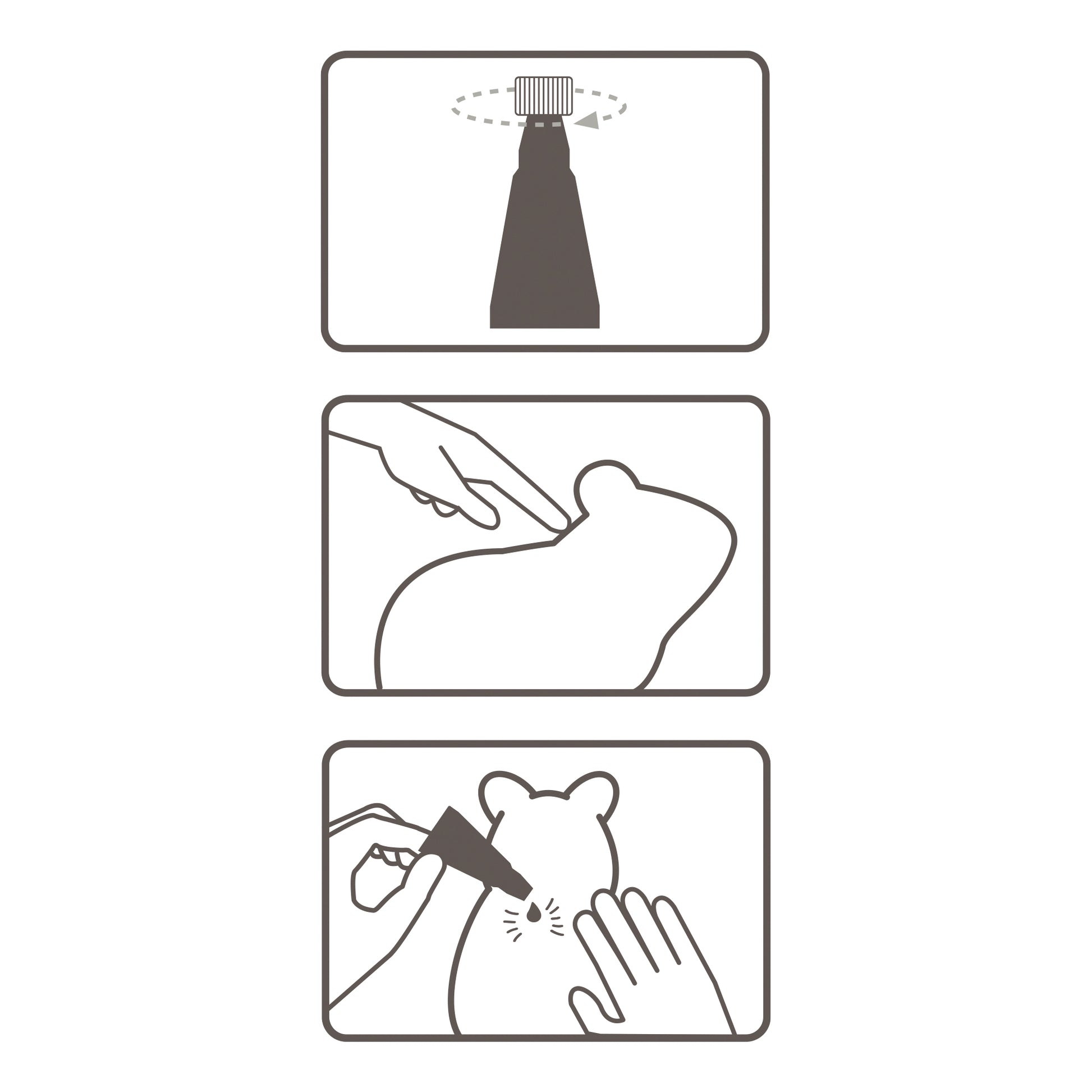 Directions: Twist off the cap and apply the entire contents of the pipette to the back of the neck. While squeezing out the contents, spread the solution over as great a surface of the skin as possible. The pack contains 2 pipettes, and the pet should be weighed before treatment and dosed as below. Animals weighing over 300 grams should be treated with Beaphar's Large Anti-Parasite Spot On. Treatments can be repeated after 4 weeks if necessary.