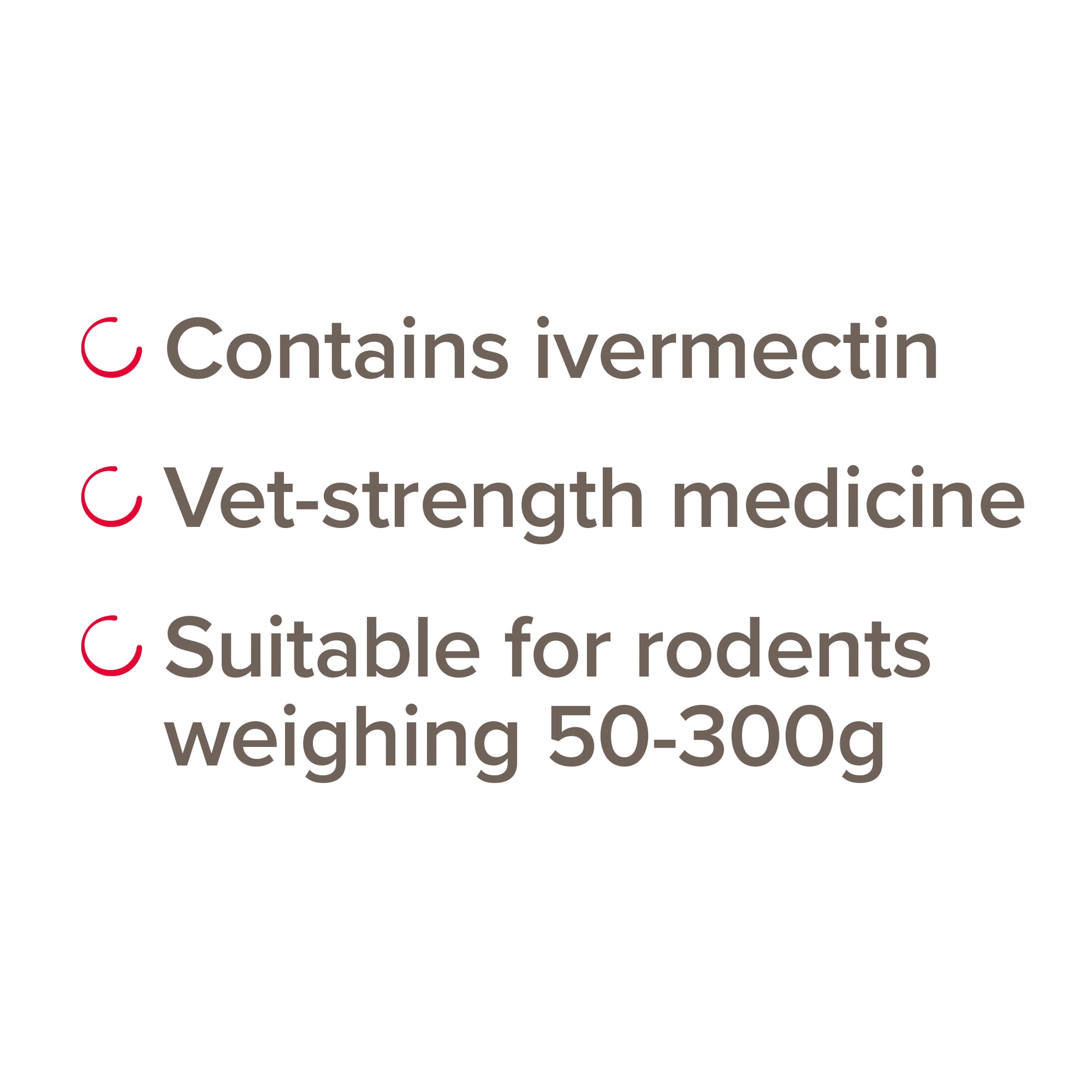Warnings: Do not use on sick or convalescing animals, or during pregnancy or lactation. Do not use on young animals which are still suckling from the mother. Only for use on Rabbits, Ferrets, Rats and Guinea Pigs. Serious reactions, including death, have been reported in dogs (particularly Herding breeds), tortoises and turtles treated with products containing Ivermectin.