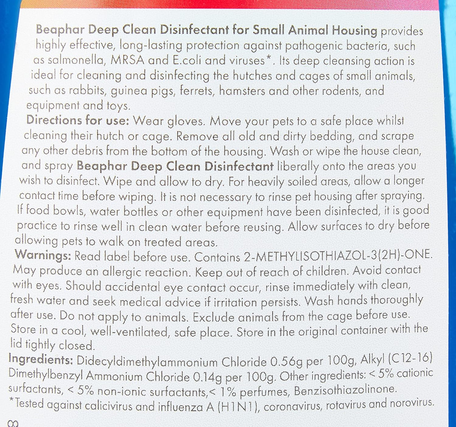 Ensure a healthy and hygienic living space for your beloved small animal with Beaphar Deep Clean Disinfectant!
