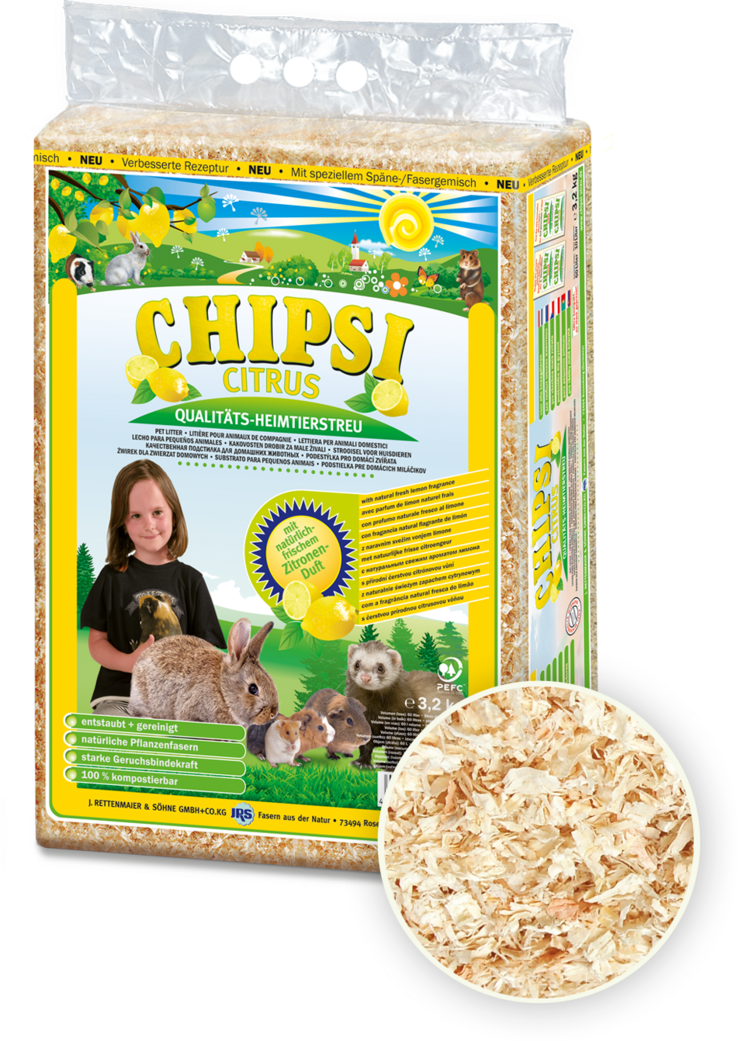 Chipsi | Woodchip Shavings | High Quality, Low Dust for Small Pets - Citrus