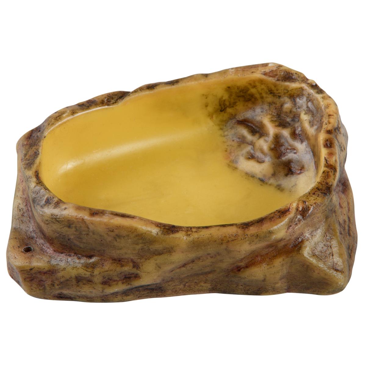 Smaller reptiles, live feeder insects and amphibians can easily escape from the water due to the 'safety' steps incorporated into the corner of each dish, while the realistic rock pool shape encourages drinking and bathing.