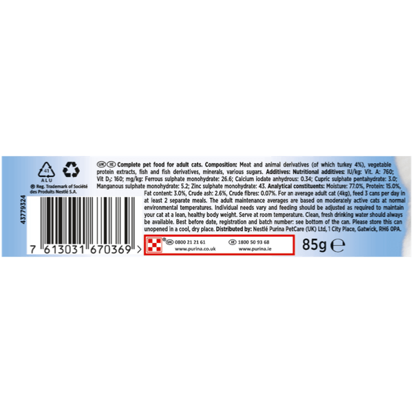 Each tin contains a carefully slow cooked meal, packed full of flavour with tasty, prime morsels of turkey balanced with a sensational, thick rich sauce - perfect for even the most discerning cat!
