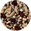 Ingredients: striped and white sunflowerseed with safflowerseed, whole maize, whole oats, paleskin peanuts, monkey nuts, pine nuts, chillies, flaked maize, flaked peas, puffed maize, puffed wheat, naked oats, buckwheat, and red dari. Feed with fresh fruit and veg.