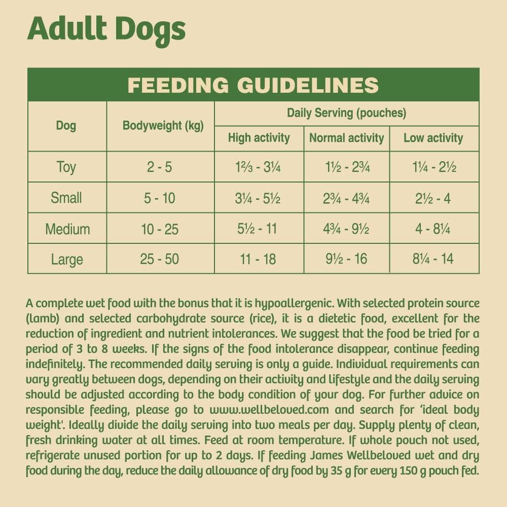 James Wellbeloved Dog Food Lamb Pouches are a delicious complete wet food or makes the perfect top up to your dog's normal dry food. Made using only lamb (Minimum 26%) as the main source of protein with easily digested rice and vegetables, James Wellbeloved Adult Dog Food Pouches have been formulated to be gentle on your dog's digestive system and reduce the risk of food intolerances and stomach upsets.