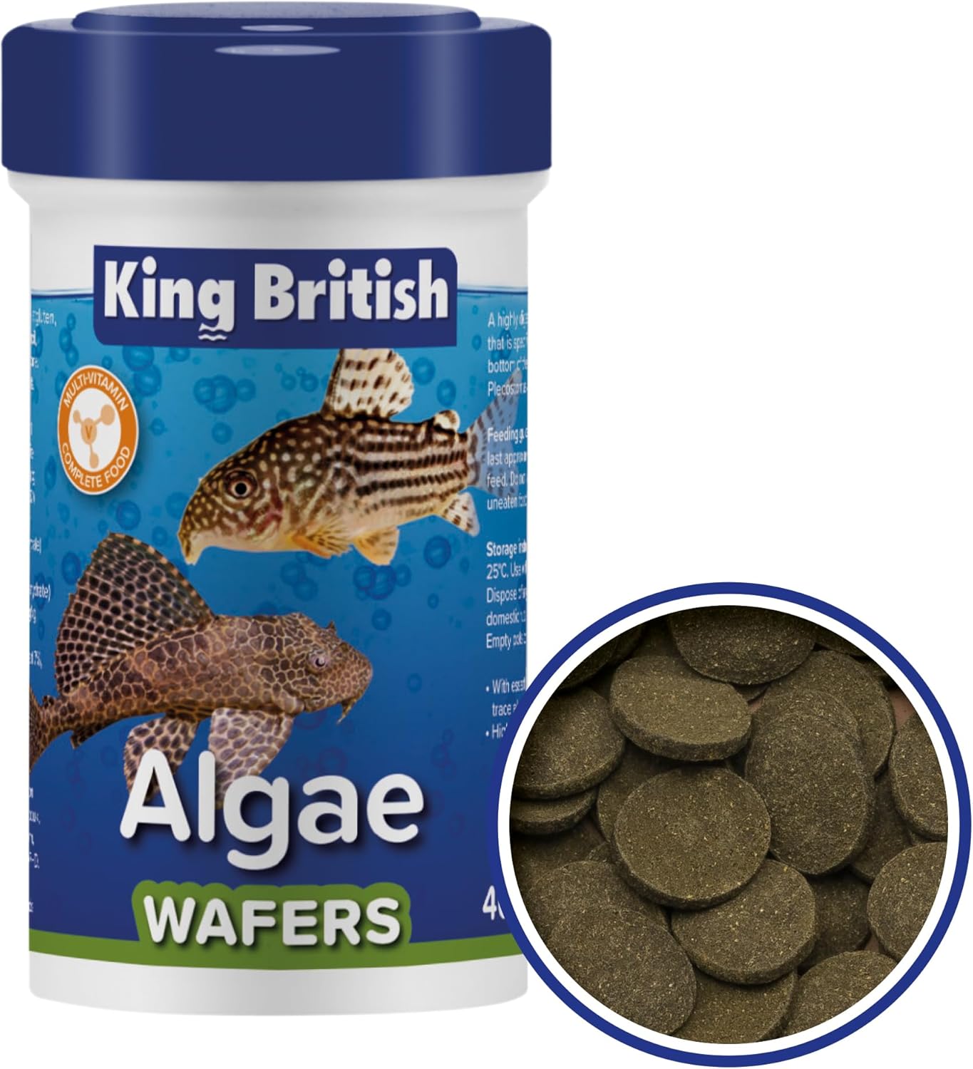 King British Algae Wafers - Complete & Balanced Food for Algae-Eating & Bottom-Feeding Fish (40g)