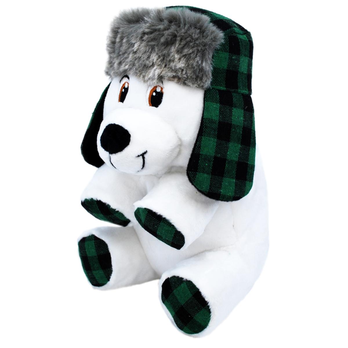 🐻 White Bear → Green tartan hat with ear covers + green tartan toes