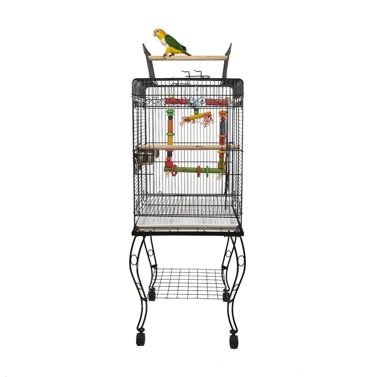 The Liberta Gama Bird & Parrot Cage is ideal for small parrots or large birds. This robust metal bird cage comes with a bird cage stand with castor wheels, allowing you to easily move the bird cage if necessary. The Liberta Gama Bird & Parrot Cage also comes with two stainless steel feeder bowls and two perches and features parrot safe openings.