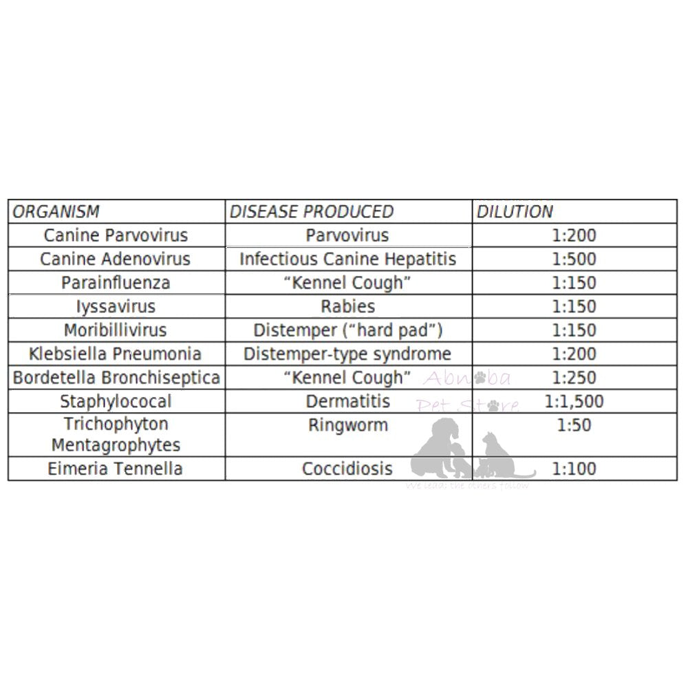 - Proven Efficacy Against Specific Pathogens: Our formula is rigorously tested and highly effective against the organisms that cause serious canine diseases. For instance, Parvo Virucide is effective against Canine Parvovirus at a dilution of 1:200, recognized as one of the most difficult organisms to inactivate. It also tackles the causes of Kennel Cough, like Parainfluenza and Bordetella Bronchiseptica, with dilutions of 1:150 and 1:250 respectively. This precision ensures you're applying the right strength for the right threat.