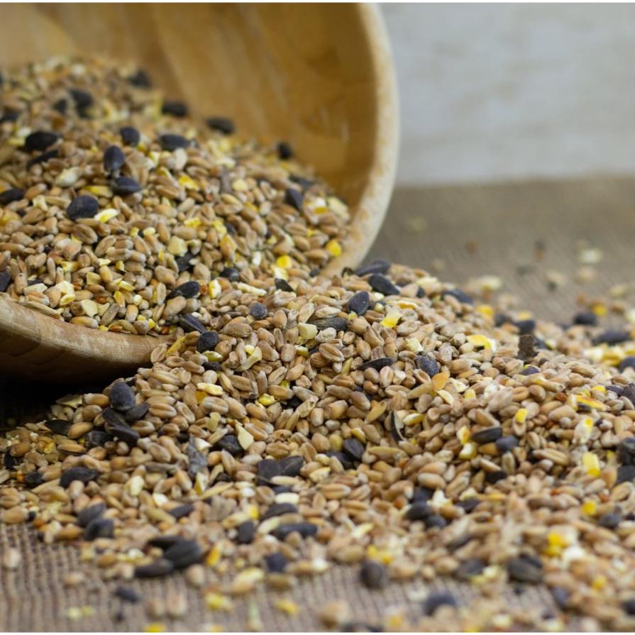 Whole Wheat, Kibbled Maize, Naked Oats, White Millet, Black Sunflower Seeds (5%), Red Millet, Canary Seed, Linseed, Black Rapeseed, Kibbled Filed Beans, Vegetable Oil.