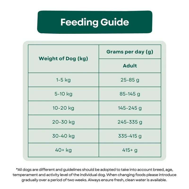 Q: What age range is this food suitable for? A: This formula is designed for adult dogs, typically aged 1–7 years. For senior dogs, we recommend the Pet Connection Grain Free Senior recipe.