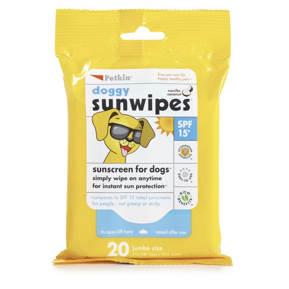 A fast and convenient way to protect your pet from the sun's harmful UV rays, Petkin Sunscreen Wipes are of a very similar strength to SPF 15 rated sunscreens for humans.