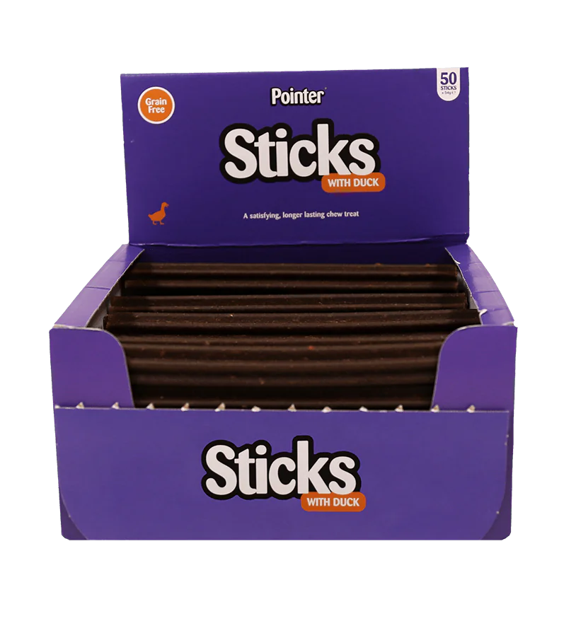 Treat your dog to satisfying and wholesome goodness with Pointer Sticks for Dogs! These deliciously chewy, grain-free treats are perfectly sized at 18.5cm long with a 2.5cm diameter, making them ideal for all breeds and ages from 6 months old. Available in four irresistible flavours – Lamb, Duck, Peanut Butter, and Chicken – each stick offers unique natural benefits, providing a highly palatable and healthy snack across Ireland & UK.