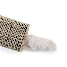 Providing the perfect combination of plush for snuggling, dangling plush ball pom poms for batting, and a cardboard body for scratching, this toy is sure to entertain all cats!