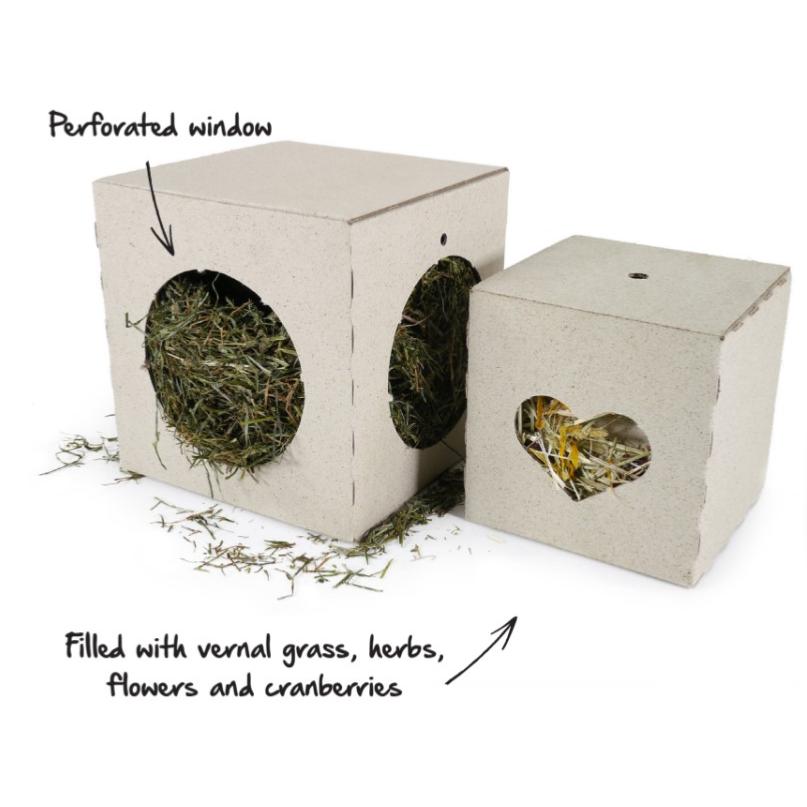 Leave for your pets to forage and destroy by either removing or leaving the perforated holes. Separate the two boxes, or leave nested; hang up with the jute cord or leave on the floor - so many fun options! For rabbits, Guinea pigs, chinchillas and degus.