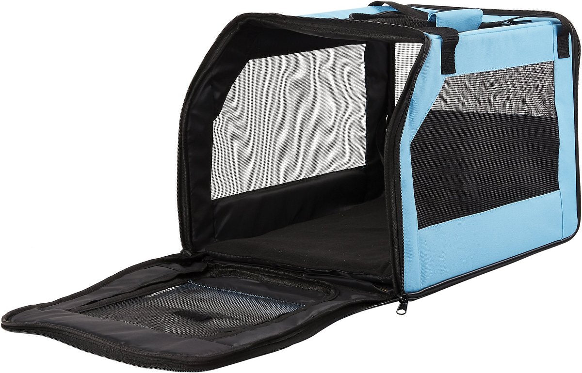 Your pet will love the solid floor and comfy fleece pad for a stable and soft ride. Getting them in and out is simple thanks to the top and front zippered doors. For added safety, there's an interior tether to keep your dog secure inside the carrier. Plus, rear pouches give you a convenient spot to store small essentials.