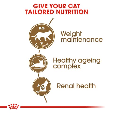 Your sterilised cat requires a complete and balanced diet to support optimal health throughout its senior years. ROYAL CANIN® Ageing Sterilised 12+ is specifically formulated with the nutritional needs of your sterilised, senior cat in mind. It is often the case that the activity levels of some senior cats reduce with age - this is particularly true for sterilised cats like yours. This can sometimes lead to unwanted or excessive weight gain.