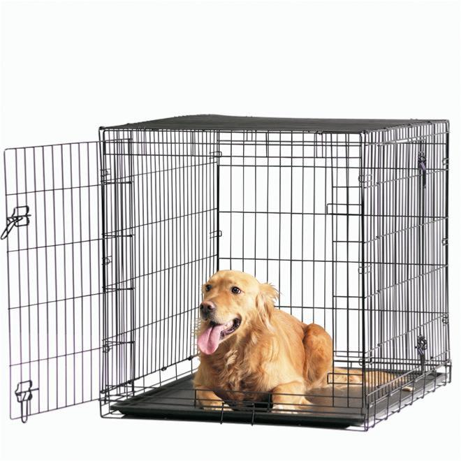 Q: How do I choose the right size crate for my dog? A: Your dog should be able to stand up, turn around, and lie down comfortably inside the crate. If it is too large, a puppy might use one end as a toilet. For puppies, you can use a divider to adjust the size as they grow.