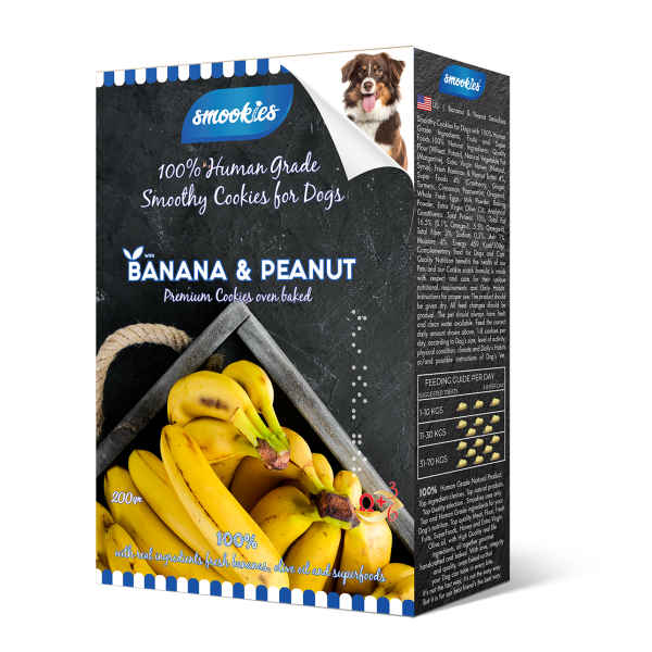 Discover a tasty and healthy treat for your furry friend with Smookies Banana & Peanut Butter Cookies for Dogs.