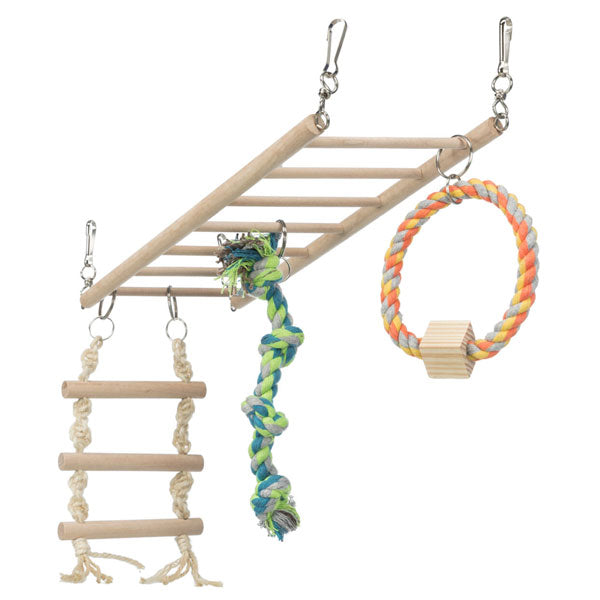 The fantastic bridge features a horizontal ladder allowing your pet to practice their balancing skills, and vertical ladder, rope and ring toys for their entertainment.