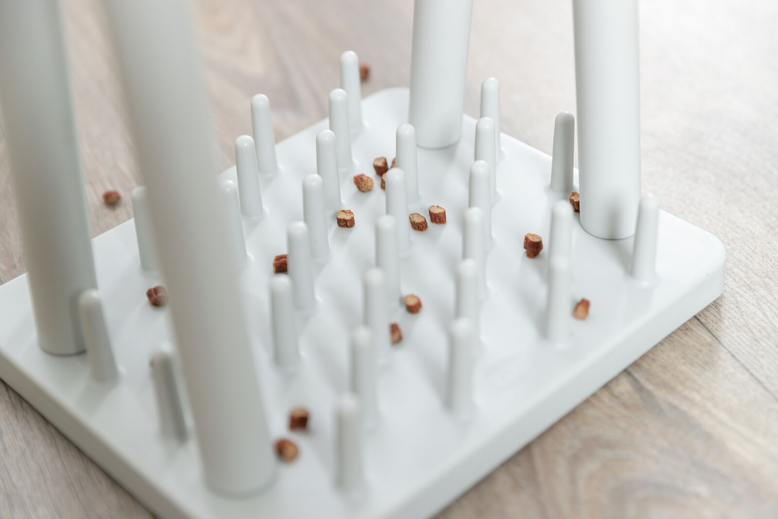 Two Game Possibilities: This versatile toy features a base plate with cones and three rotating elements with two different lids. Food and treats can be hidden on the base plate or in the turning elements, offering varied levels of challenge and preventing boredom.