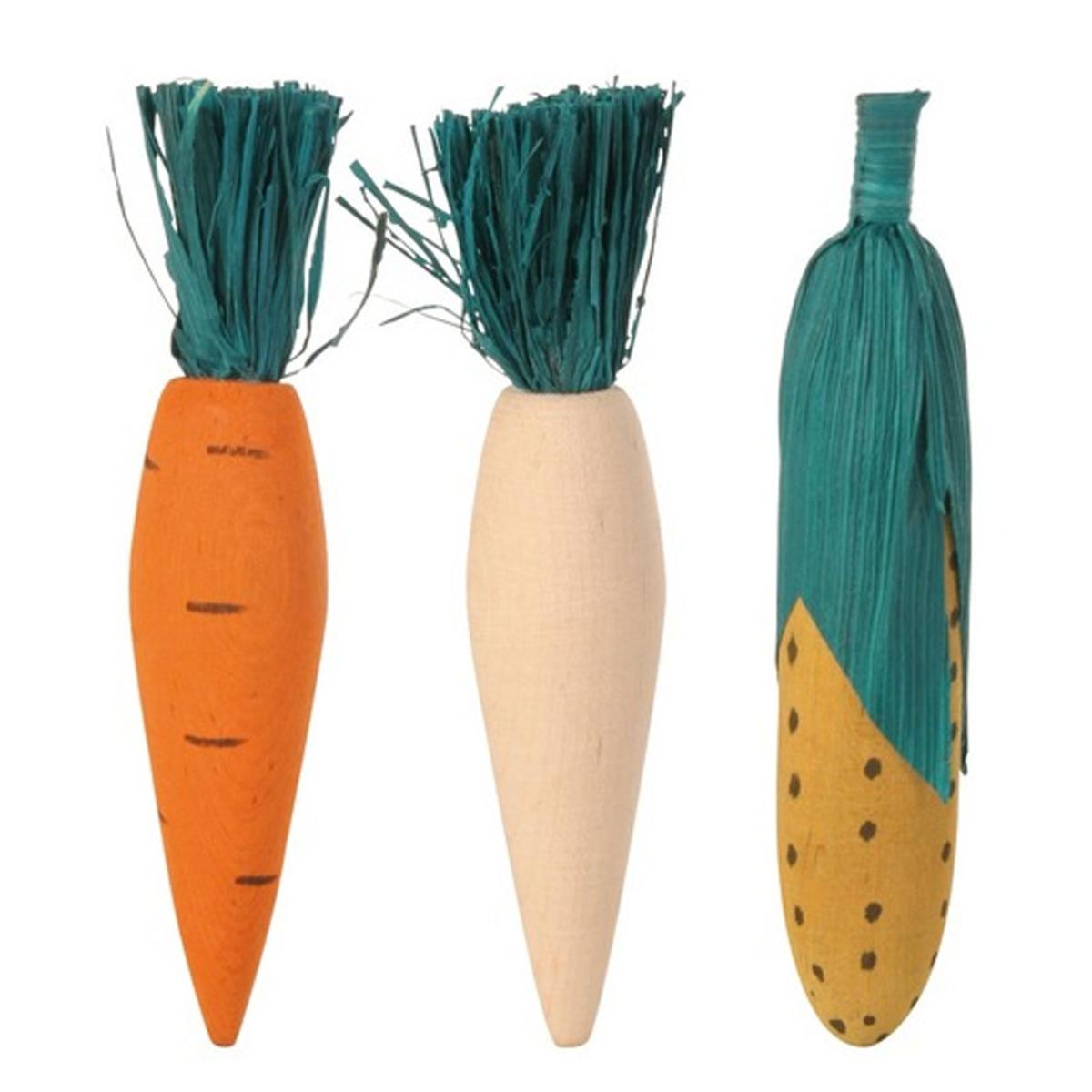 These Trixie Wooden Chew Toys are a pack of 3 vegetable shaped wooden chew toys, suitable for Rabbits, Guinea Pigs, Hamsters, Degus, Gerbils, Rats, Chinchillas and Mice.